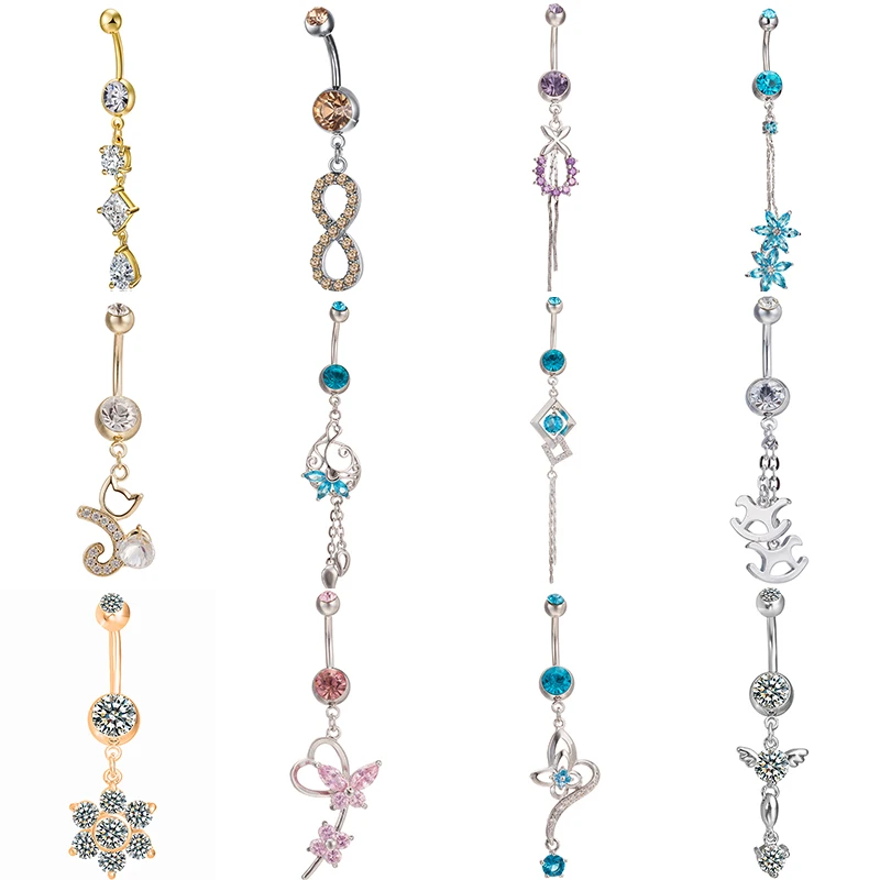 Best Offer Cute Little Animal Beautiful Zircon Belly Button Piercing for Women Sexy Pendant Lady Medical Steel | Blue Nature Stone Kawaii Pineapple Zircon Navel Piercing Stainless Steel Heart Belly Button Rings Sexy Body Jewelry For Men