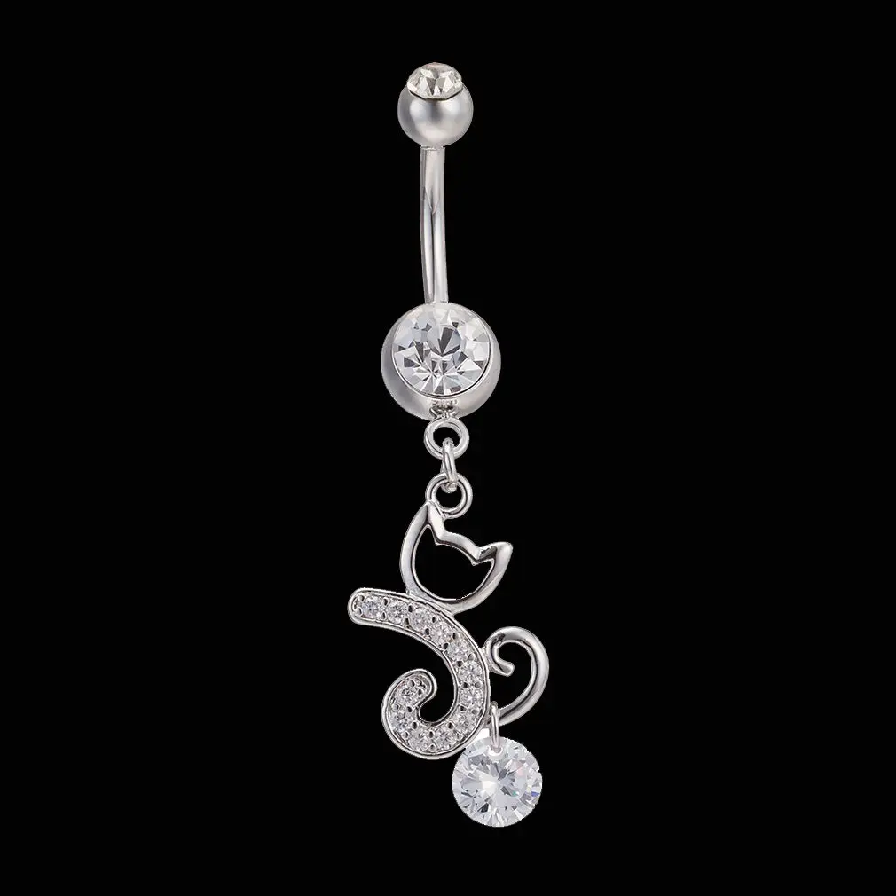 Pre-owned Cute Little Animal Beautiful Zircon Belly Button Piercing for Women Sexy Pendant Lady Medical Steel