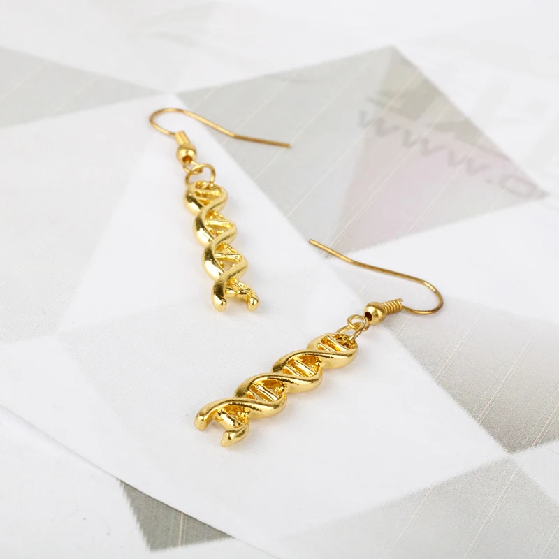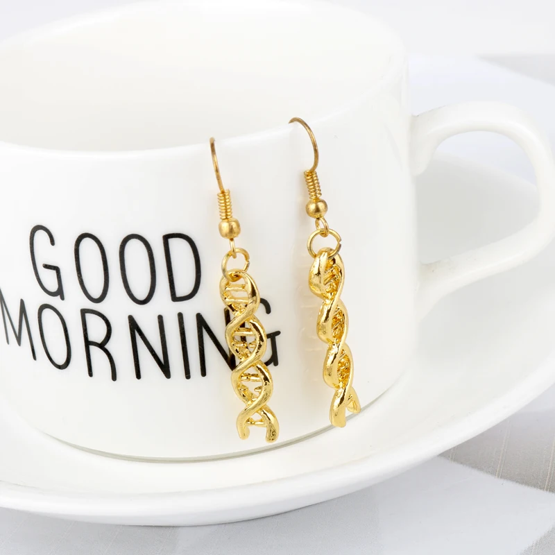 Luxury MQCHUN Chemistry Science Molecule Structure Double Helix Spiral DNA Gold Drop Earrings Medical Stud