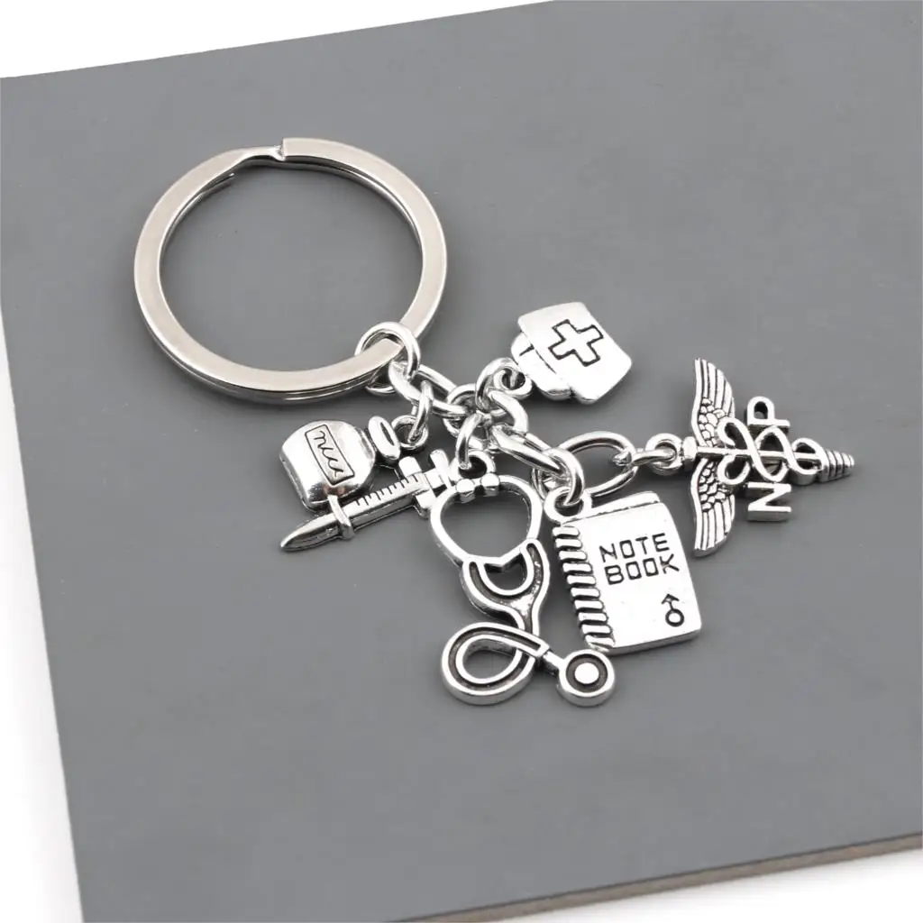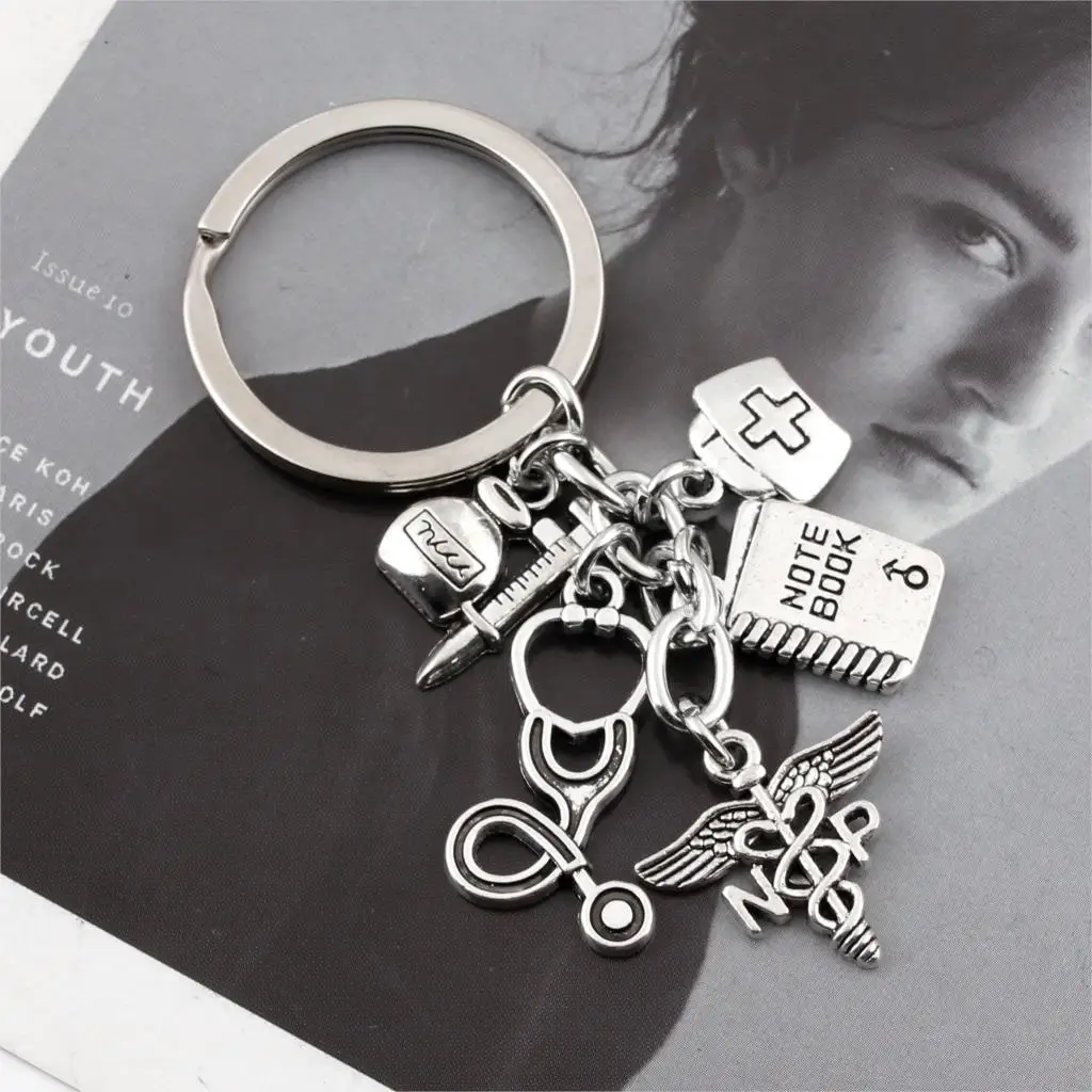 - 1pc Nurse Keychain Physician Assistant Key Chains Medical Keyring Stethoscope Syringe Charms Do What You Love Jewelry E2045