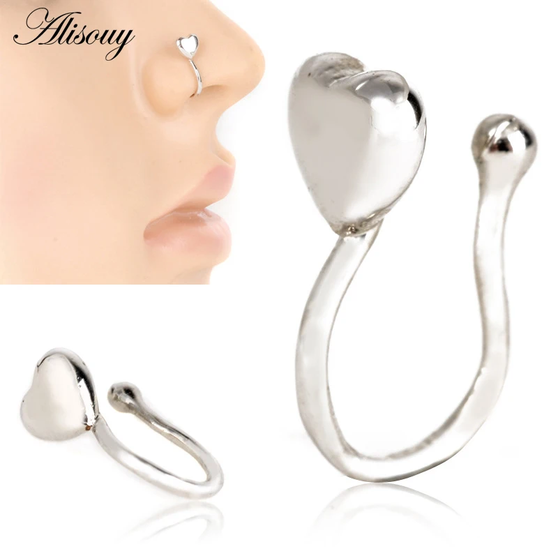 New Alisouy 1pc Fake Septum Medical Titanium Nose Ring Steel Body Clip Hoop For Women Septum Piercing C | Alisouy Wholesale Fashion Black Steel Stainless Steel Earrings Women Men's Barbell Dumbbell Punk Gothic Stud Earring For men