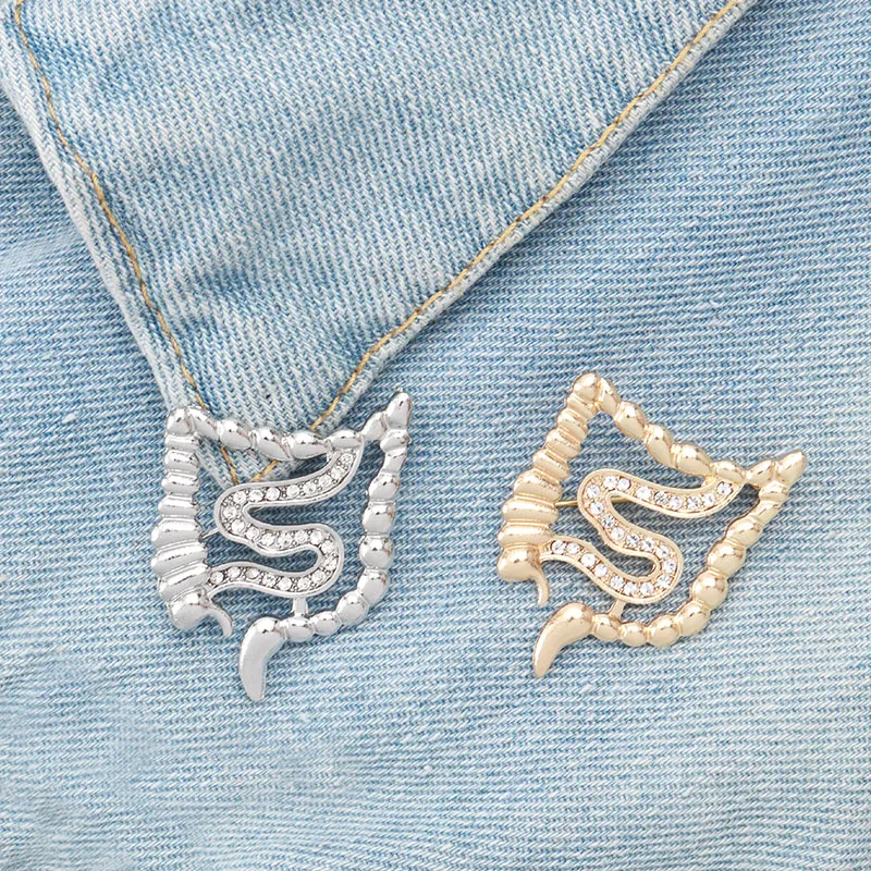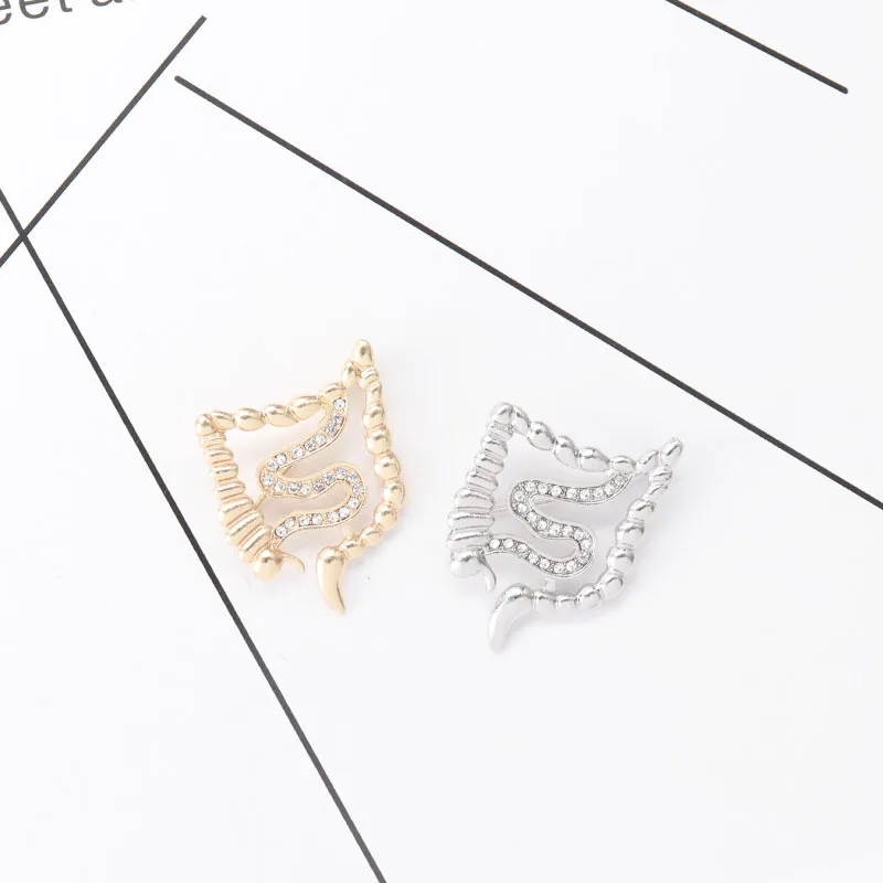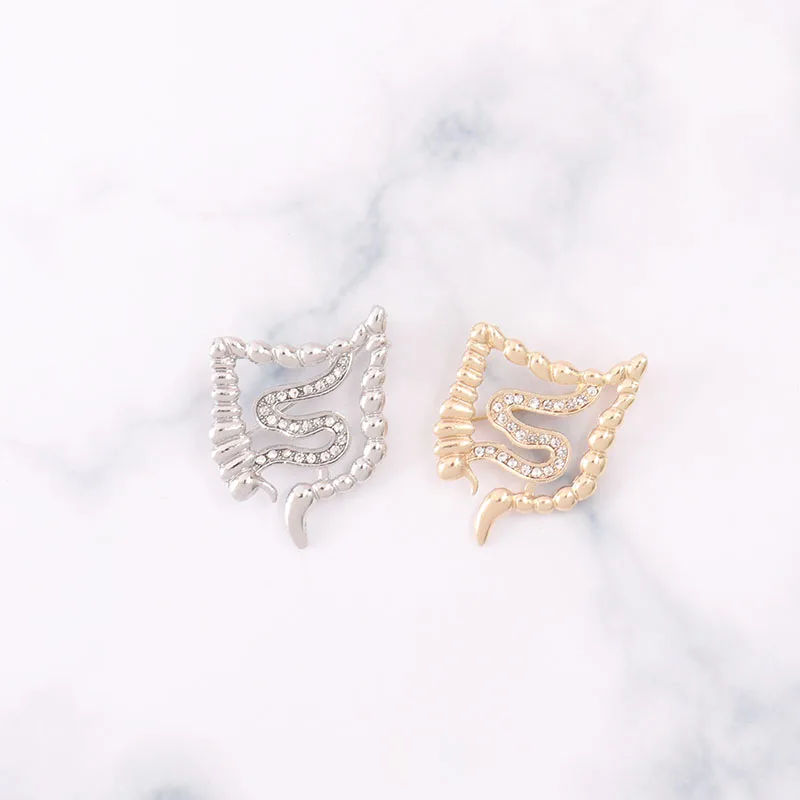 Discount Bowels Shape Brooch Pins Gold Silver Zircon Organ Medical Jewelry Gastroenterology Medicine Brooch