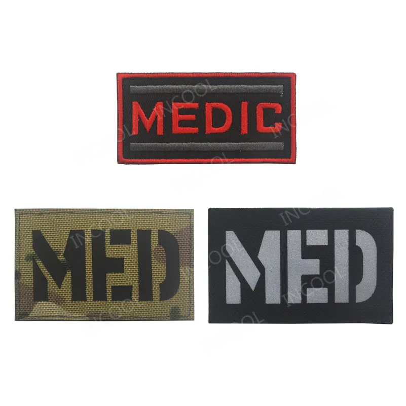 - MEDIC Embroidered Patches IR Reflective MED Military Morale Patches Tactical Combat EMT Emblem Applique Fabric Embroidery Badges